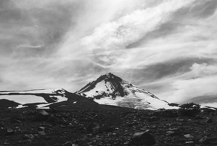By far the most difficult section was around the Elliot Creek crossing (about 24 miles in), which has been washed out and is laborious to navigate. (Here’s a detailed description of the Elliot crossing that helped us). The trail is technically closed here, but there is an alternative route into the Elliot Creek basin that includes lowering and climbing via ropes. We ended up hiking farther up Elliot Creek to more shallow water (where the creek splits into two), but then lost the trail after climbing back up the opposite side of the basin. Eventually, we cut off the trail we were on (most likely the Cloud Cap trail), hiking west cross country until we regained the Timberline Trail.
